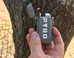 This is my favorite all-around fire-starting source. Arc lighters like Pyro Putty’s Elite Rechargeable Dual Arc Lighter are dependable, lightweight, and are even rechargeable. In basic terms, Arc lighters use a very hot spark from a high-voltage electrical current. Coming from a very concentrated area, it will ignite a pinch of Pyro Putty quickly and efficiently.