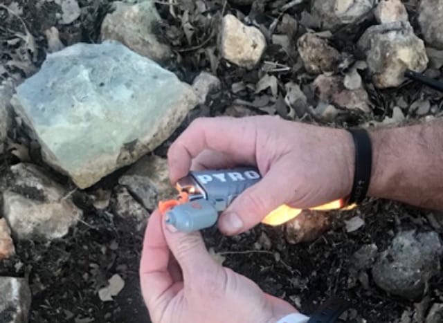Pyro Putty is waterproof. I could probably drop the mic there. With a nickel-sized piece and an ignition source, you can establish a flame in about 15 minutes. This window is ample time to add kindling and ultimately larger pieces of wood. For ignition, you only need matches, a butane lighter, a dual arc lighter, or Ferro rod and striker. You’re in business, even during wet conditions.